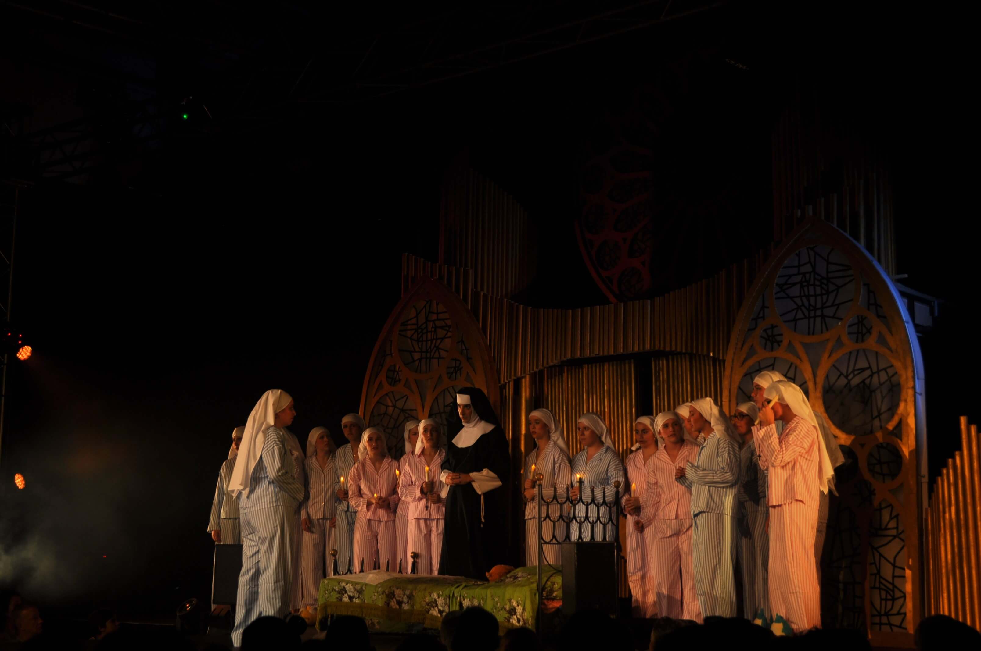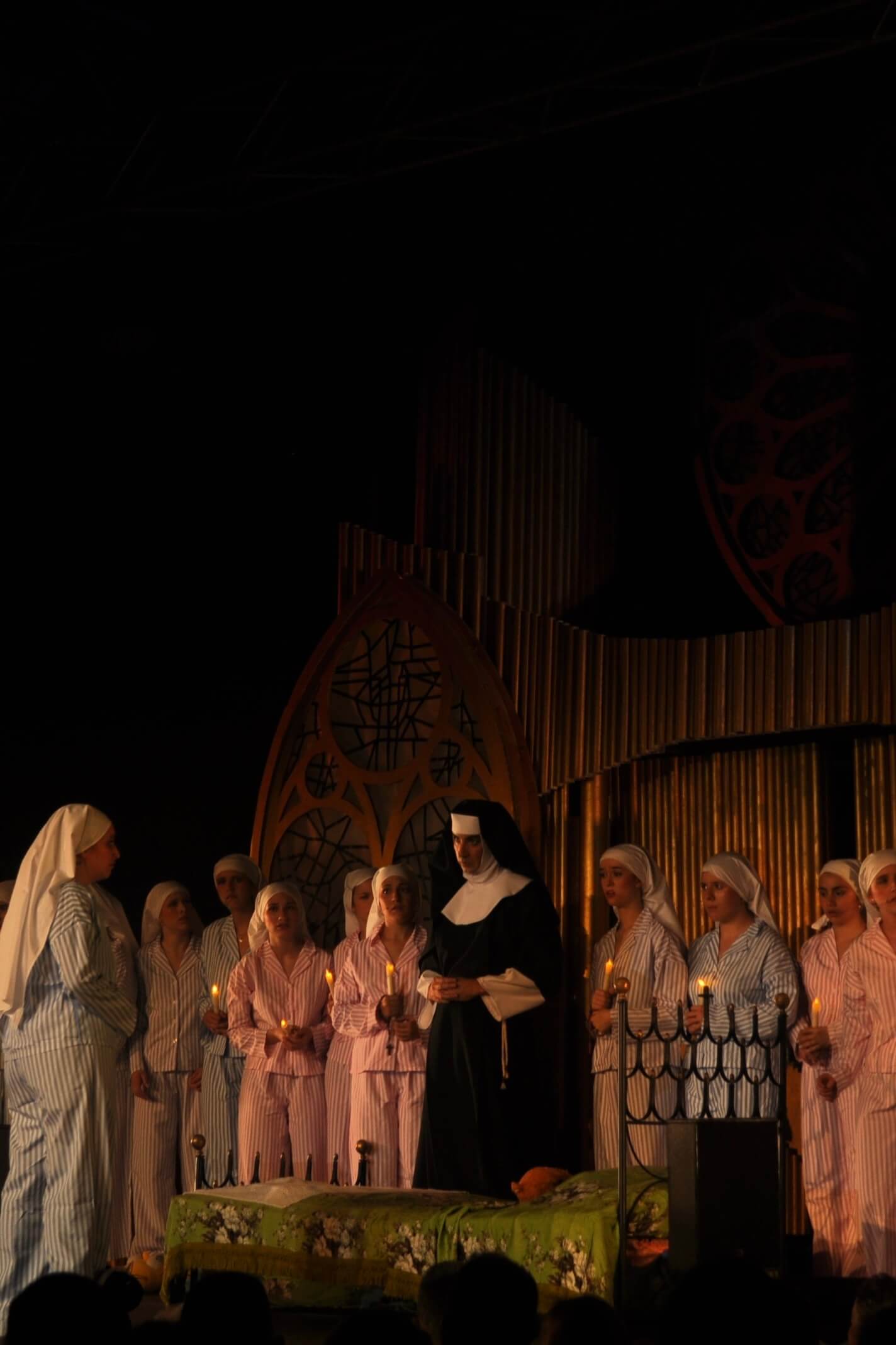 Deloris: Isabella Arismendi | Madre Superiora: Álvaro Rosales | Hermana María Roberta: Helena Fernández | Hermana María Patricia: Sofía Nogueria | Hermana María Lázaro: Gili Stern | Hermana María Juana: Vicky Moreno | Hermana María Teresa: Ángela Núñez | Hermana María Clotilde: Julia Montalvo | Hermanas del Convento de Santa Catalina: Erica Russel, Blanca Hernández, Carolina de Pablos, Andrea Rubio, María Nieto, Mencía Revilla, Patricia Santa Cruz, Claudia Ayuso, Marta Pellicer, Miguel Martínez | Monseñor O'Hara: Carlos Martín | Curtis: Miguel Jurado | Eddie: Sergio G. Cilleros | Brad: Liam Rodríguez | TJ: Sergio Martín | Joey: Fran Cantos | Diego Armando: Elián Kreimer | Whitey: Nicolás Ríos | Michelle: Carolina de Pablos | Tina: Andrea Rubio | Ernie: Ignacio Martínez | Monaguillos: Samuel Del Barrio, Álvaro Brinkman, Gael Galiacho, Daniel Montesinos | Camareras: Carlota Martín, Eva María Rahona | Clientes: Carlota Losada, Daniel Montesinos | Obreros/Policías: Daniel Ferrera, Juan Carlos Berihuete | Sobrecargo del vuelo Marquee 2024: Alejandra Acosta | Banda de Música Experiencia Marquee: Roberto Jimenez, Óliver Burillo, Luisa Teuchmann, Oriol Burillo, Benjamín Sánchez | Cuerpo de Baile: Paula Barba, Valentina Marín, Gabriela Soler, Zara Madariaga, Sofía Pradilla, Julia Montalvo, Paola Rodríguez, Laura Bermejo, Laura Soto, María Herranz, Ana María Alegre, Laura de la Torre, Eva María Rahona, Luna Pujol, Silvia C. Pérez, Kiana Muñoz, Miguel González, Carlota Losada, Nayra Fuentes, Blanca Hernández, Erica Russel, Vicky Moreno, Helena Fernández, María Nieto, Carlota Martín, Asal Kazemitorki, Alicia de Assas, Nicole Serrano, Sofía Cabrera, Berta Padilla, Samuel del Barrio, Lucía Diez